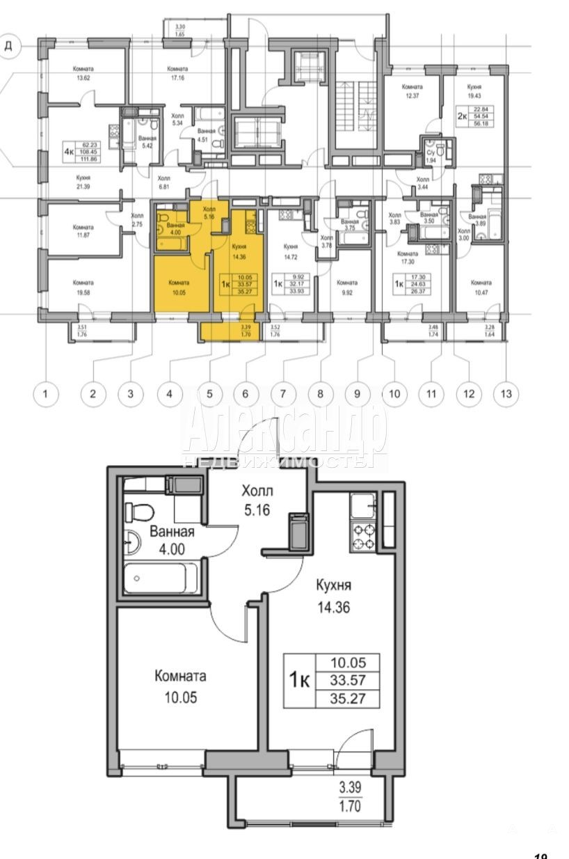 Общая площадь квартиры 33, 57 м²., без учета лоджии 3, 39 м², . Этаж: 8 из 23.