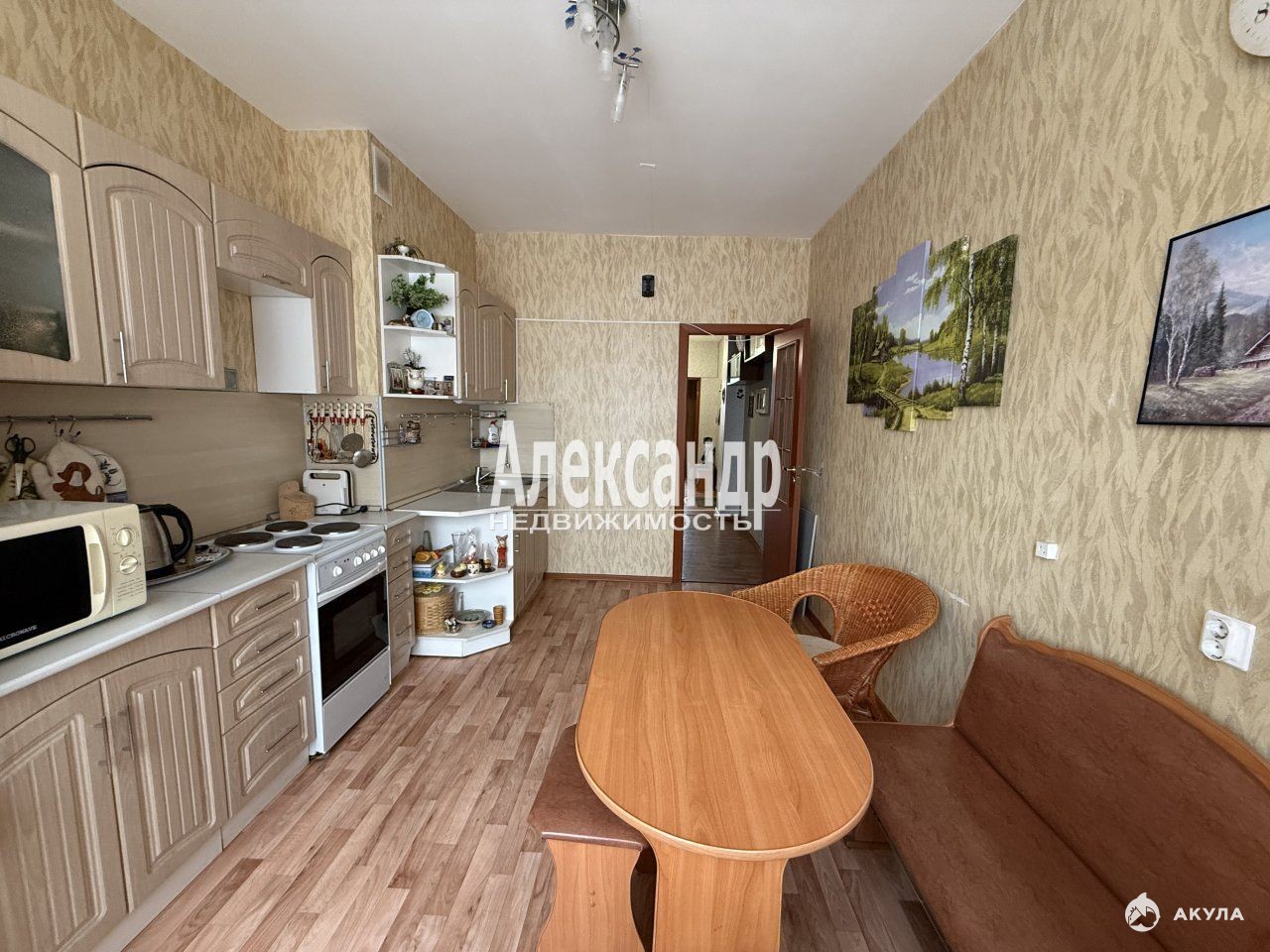 Большая кухня 12, 9 кв. м. здесь легко поместится и полноценная столовая зона, и мягкий уголок. Окна кухни выходят во двор — тихо и спокойно. Комната 17 кв.м. с окнами на Мебельную улицу. Из окон открывается красивый вид на комплекс Лахта Центр. В просторном коридоре есть отдельная гардеробная — мечта любой хозяйки!