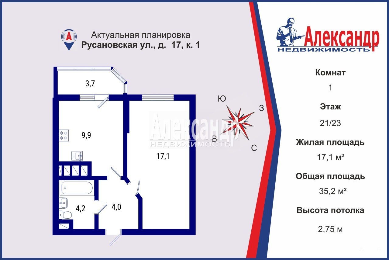 1704544 «Вид на воду» ключевая востребованная опция для недвижимости в Петербурге. Однокомнатная квартира 35, 2 м с идеальной классической планировкой. Пропорциональные: квадратная кухня 9, 9 метров и комната 17, 1 м, с выделенном местом для шкафа -купе, спальное, рабочее место. Совмещенный большой, просторный с/узел, стиральная машина без проблем входит.