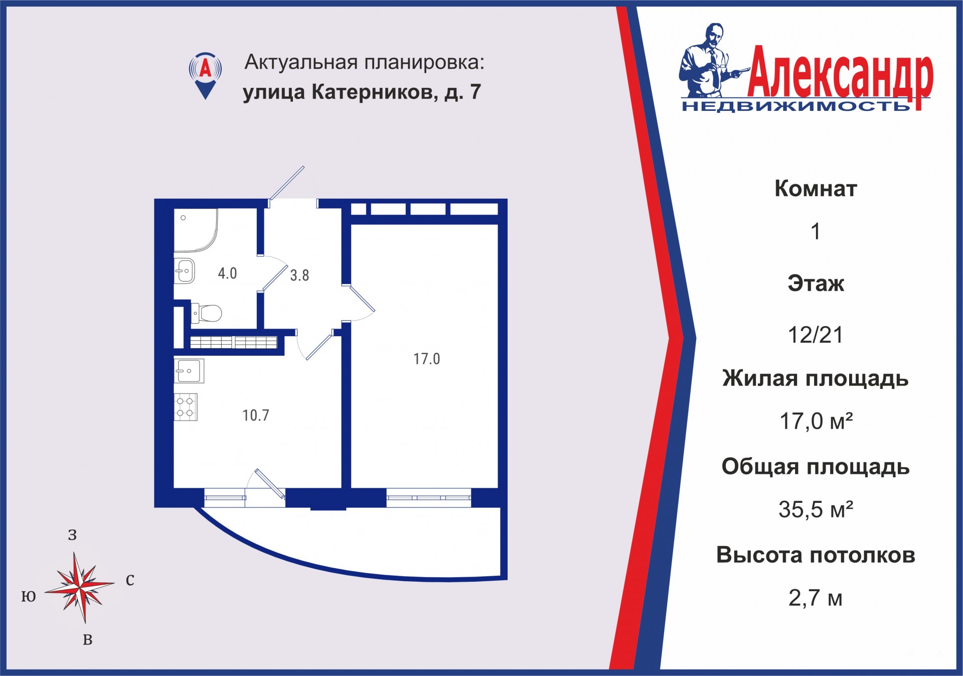 35, 5 м² общей площади (лоджия 6м²)