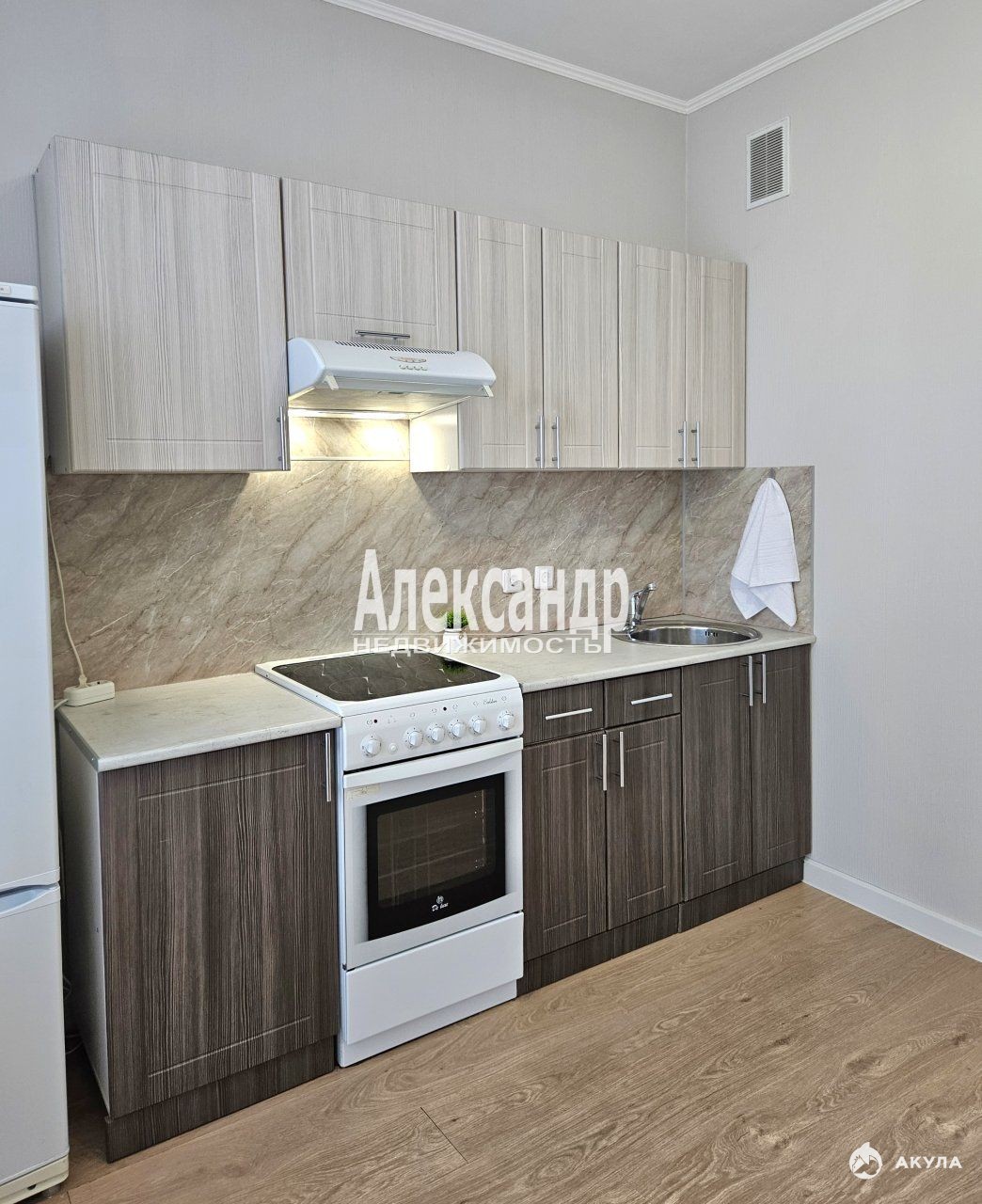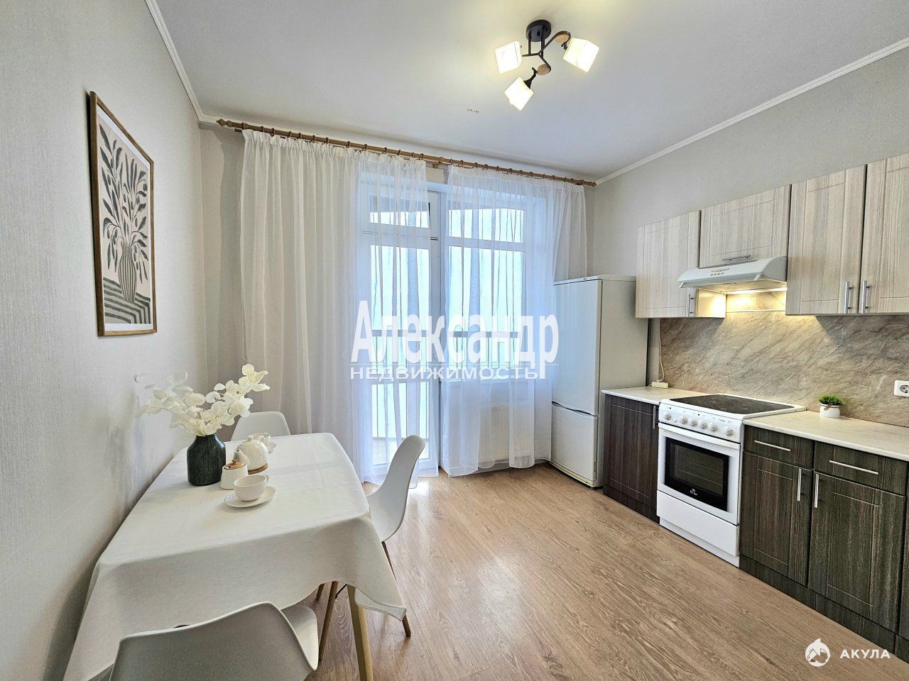 - Просторная кухня с мебелью и бытовой техникой.
