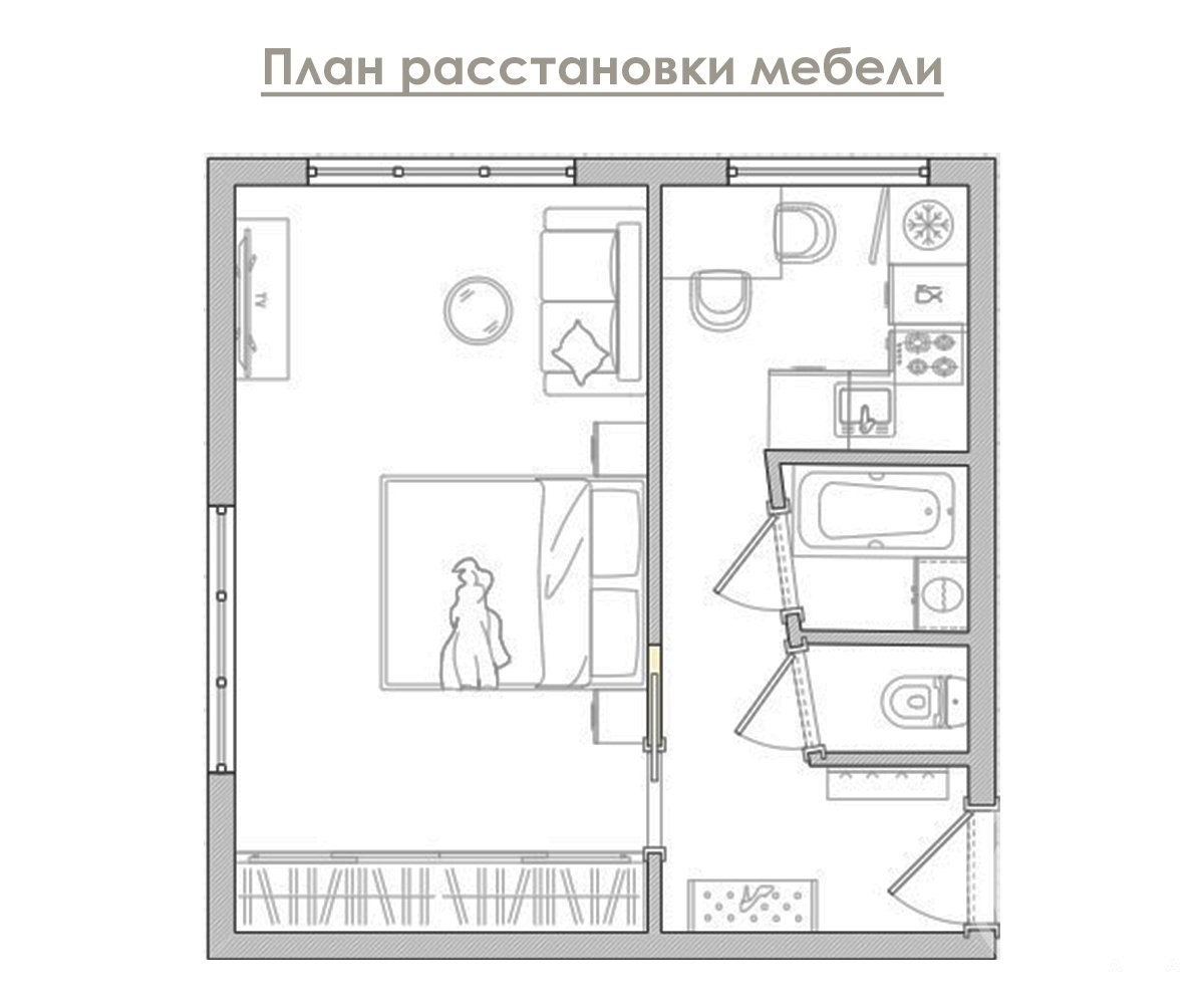 Просторная комната 17, 5 м2 позволяет создать несколько функциональных зон: зону спальни с двухспальной кроватью, зону отдыха и просмотра ТВ и зону хранения с вместительной гардеробной или шкафом купе.