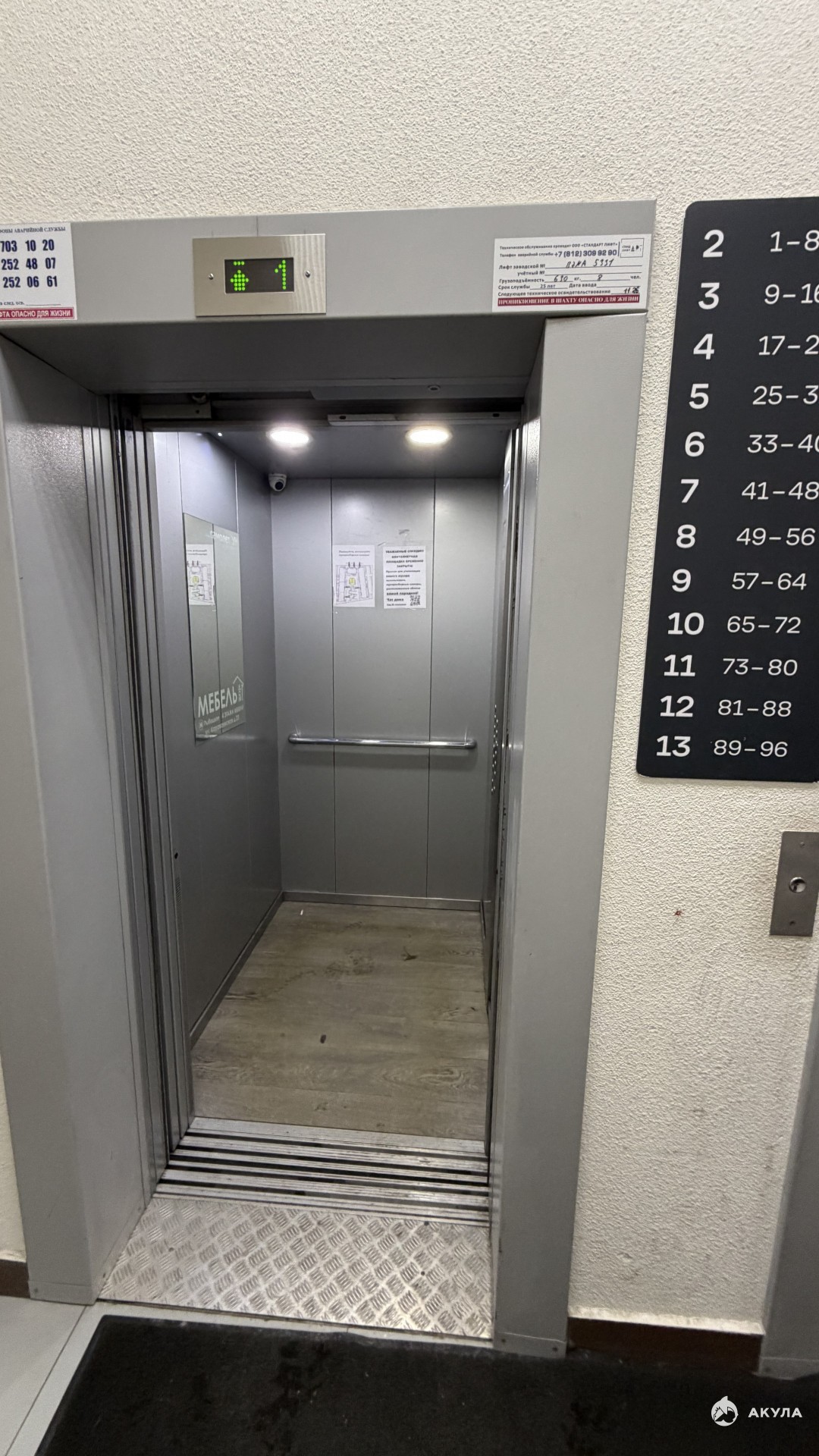 Квартира расположена на 6 этаже в средневысотной (13-этажной) части дома, что положительно сказывается на плотности заселения, на этаже 8 квартир. Вход в парадную оборудован для удобства людей с колясками и в колясках.