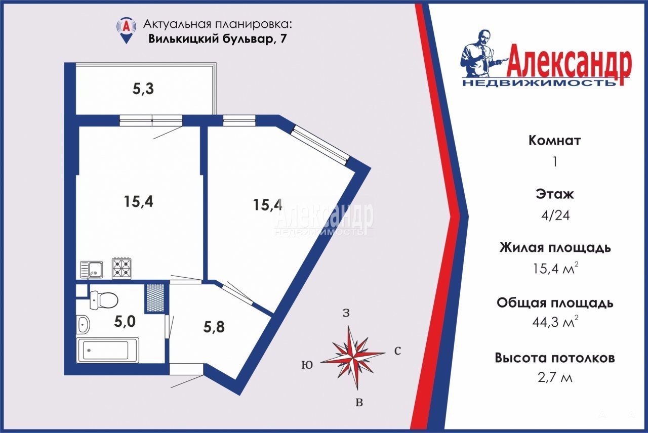 Предлагаем вашему вниманию просторную евро-двухкомнатную квартиру на Васильевском острове.