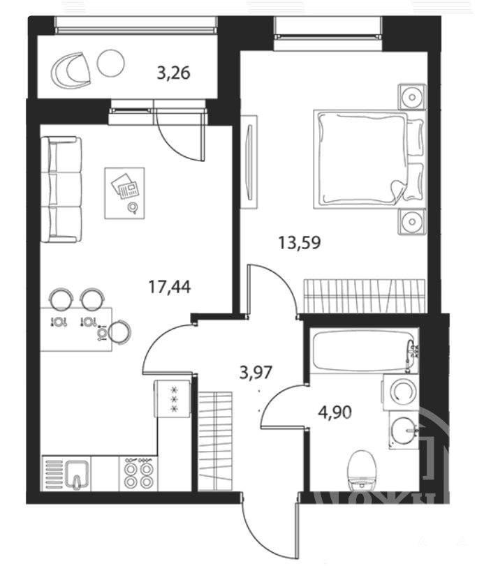 - 17.44 м²