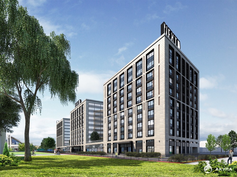 Архитектурное решение многофункционального комплекса соответствует самым современным тенденциям. Концепцией предусмотрено строительство трех отдельно стоящих корпусов, которые объединяются стилобатом, в котором в будущем разместятся входные группы и коммерческие помещения.