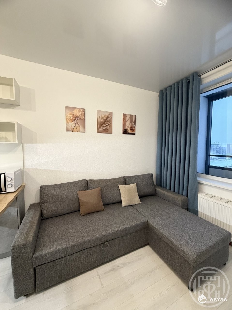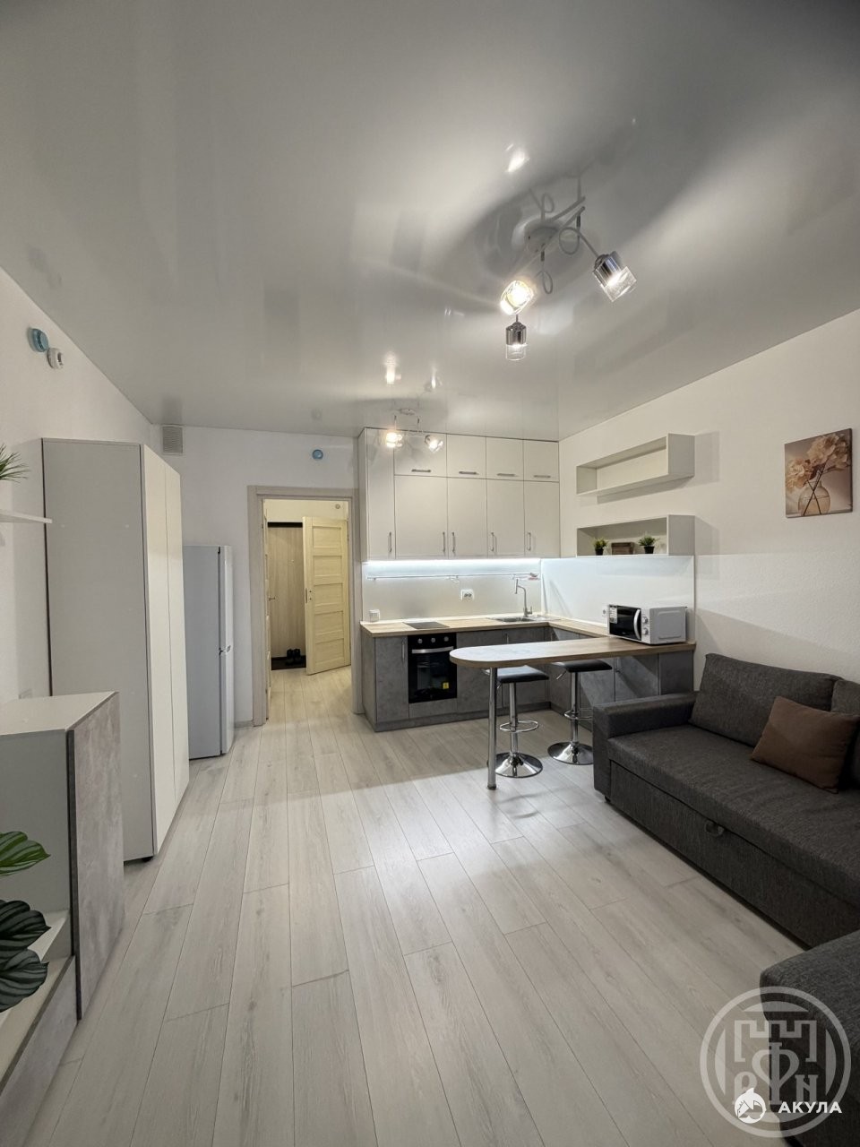 Продаётся просторная, укомплектованная мебелью и техникой студия в ЖК Окла, застройщик ЛСТ, дом 2022 г.п. Мебель: встроенная кухня, барная стойка с барными стульями, угловой диван, корпусная мебель типа `стенка`, вместительный шкаф купе c зеркалом. Техника: варочная панель, духовой шкаф, вытяжка, стиральная машина, холодильник.