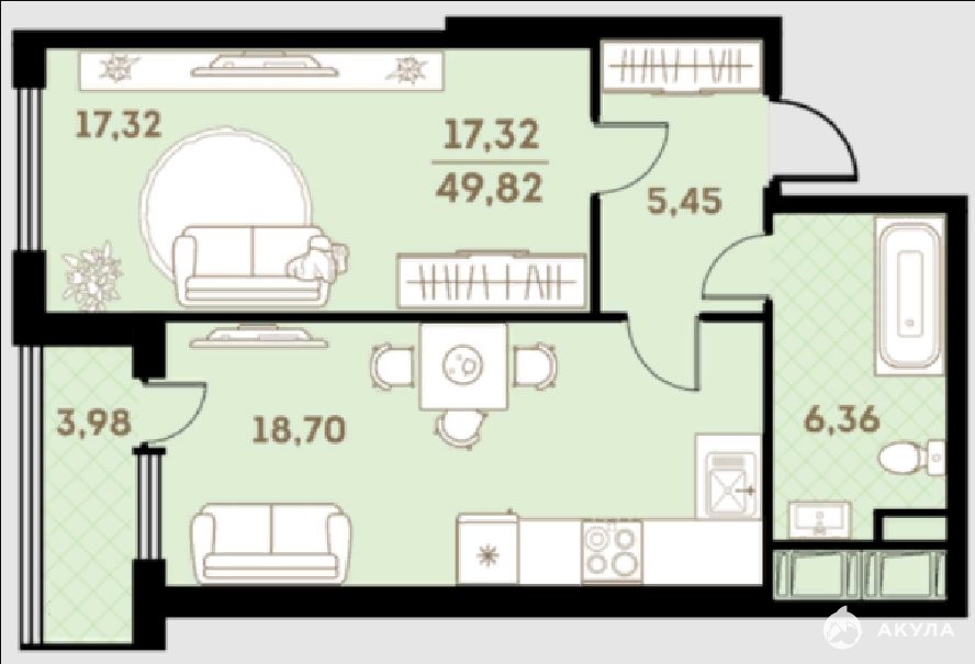 - 17.32 м²
