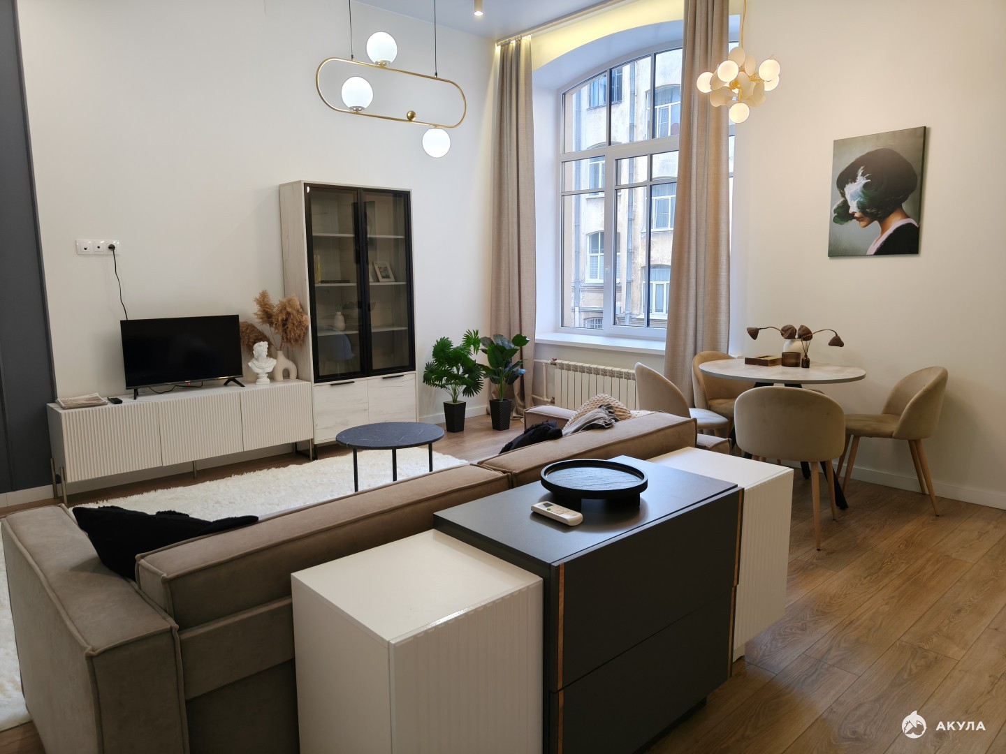 Квартира предлагает функциональную планировку, включающую уютную отдельную спальню и впечатляющую кухню-гостиную площадью более 30 квадратных метров, создающую идеальное пространство для семейного досуга и приема гостей. Особое очарование квартире придают высокие потолки — 3.60 метра, которые дарят ощущение простора и света.
