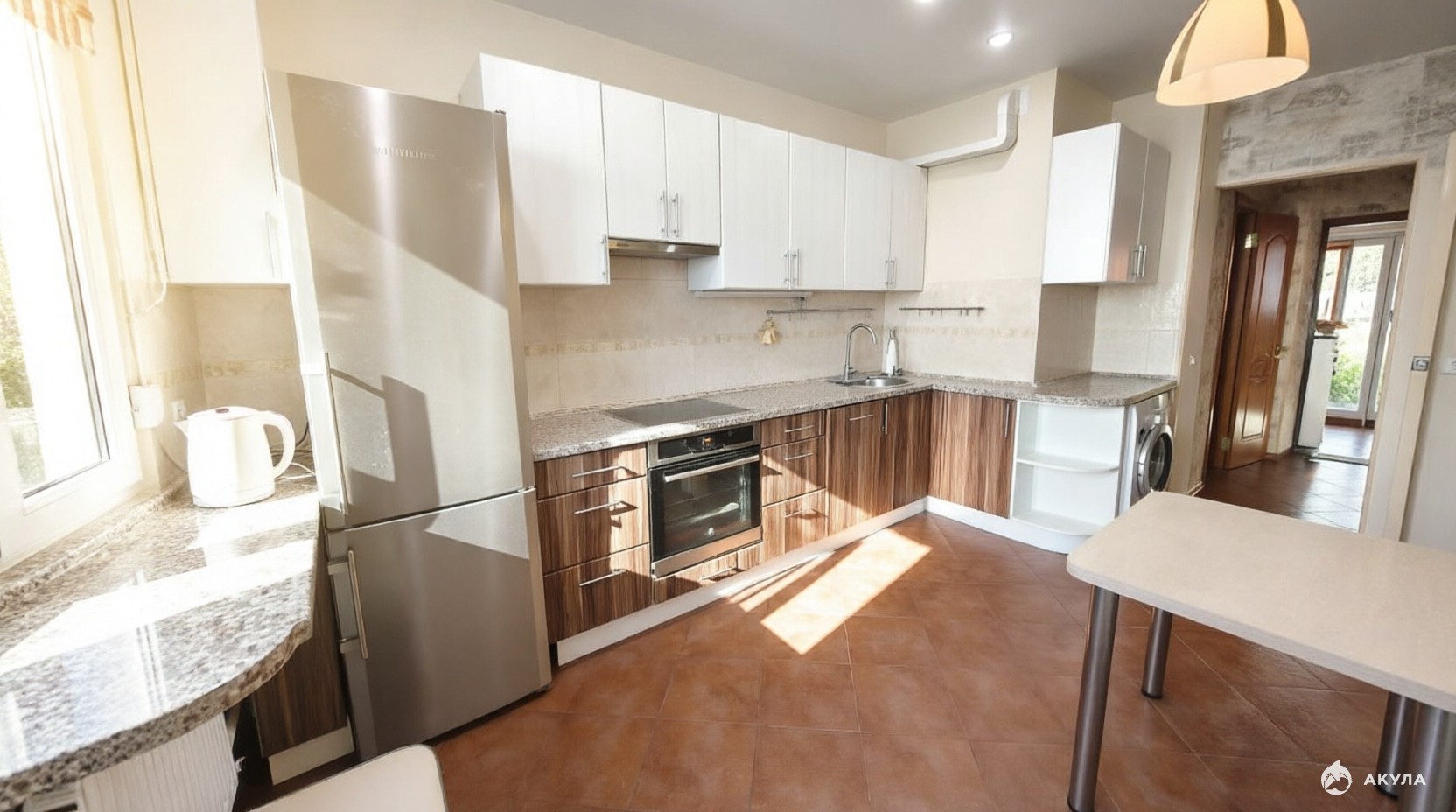 Сделан качественный ремонт, кухня со встроенной техникой остается
