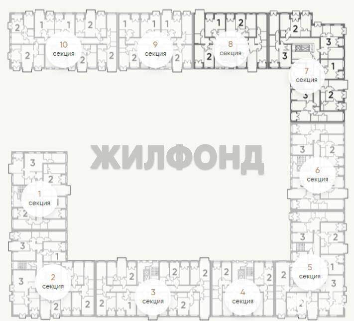 9 корпусов, высота 11-13 этажей, жилой фонд ? 2027 квартир.