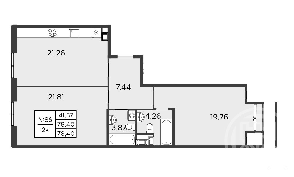 №341761 Предлагается видовая квартира на 9-м этаже современного клубного дома: по планировке двухкомнатная, общей площадью 75, 61 м², с просторной кухней 21, 26 м² и двумя раздельными санузлами. Пространство можно сохранить в текущем виде, а при согласовании реализовать свободную планировку — от кухни-гостиной и приватного мастер-блока до варианта с отдельным кабинетом. Несколько больших окон наполняют квартиры естественным светом и раскрывают панораму на Синопскую набережную и Неву; в период разведённых мостов открываются виды на поднятые пролёты Большеохтинского и моста Александра Невского, что добавляет вечерним часам особую атмосферу города на воде.
