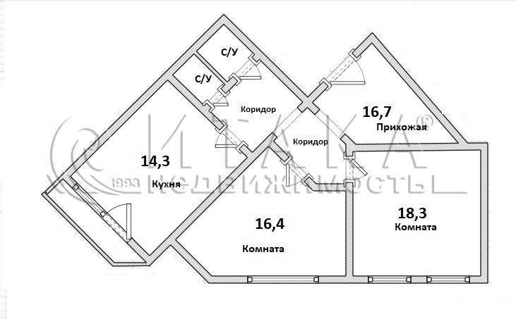 129246119 Предлагаем квартиру с интересной планировкой и большой (14, 3 кв.м) кухней!