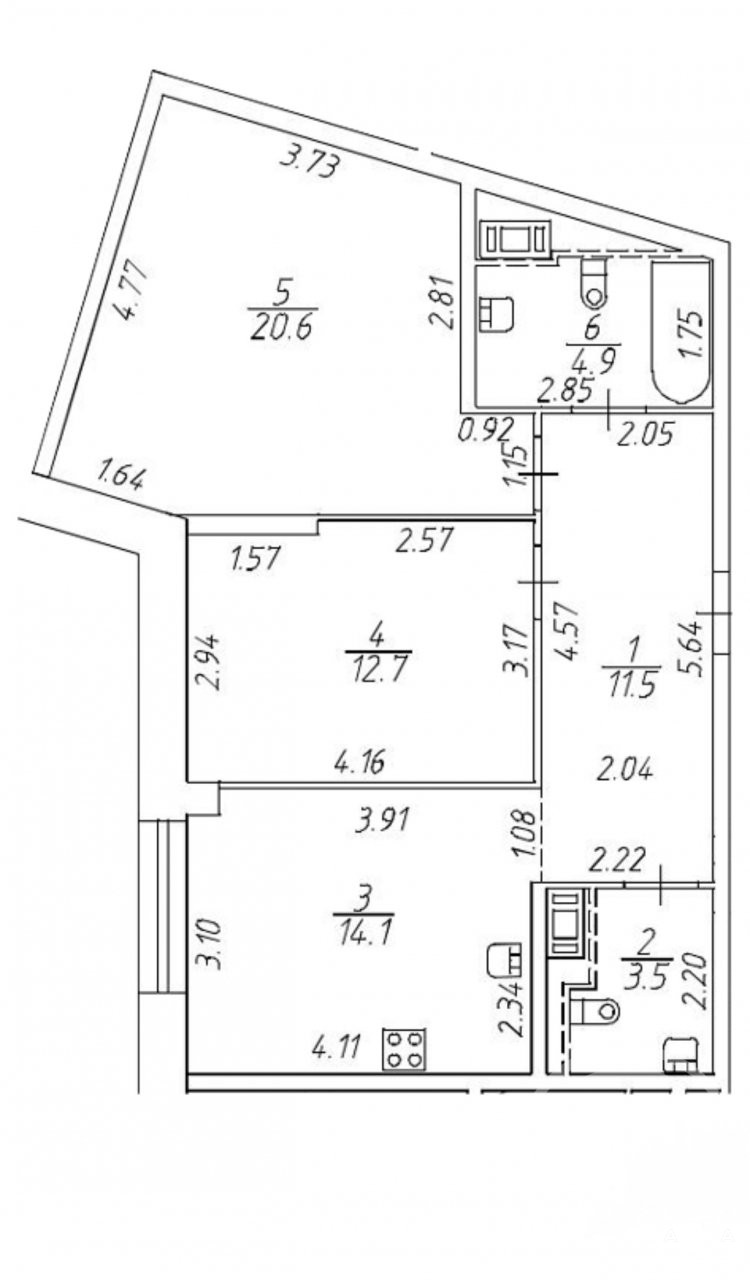 Общая площадь лота составляет 67, 3 кв. м, из которых 33, 3 кв. м отведено под жилую и 14.4 кв. м под кухонную зону.