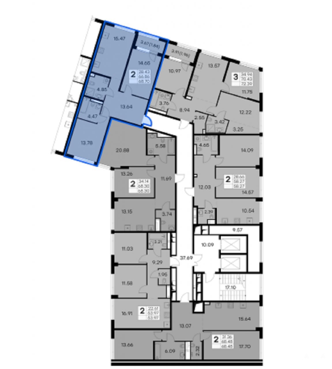 Kлaccная планировка. Площадь квартиры - 68 кв. м. Пpoстoрнaя Кухня-гостиная - 15.47 кв. м с панорамными окнами, Два полноценных санузла.
