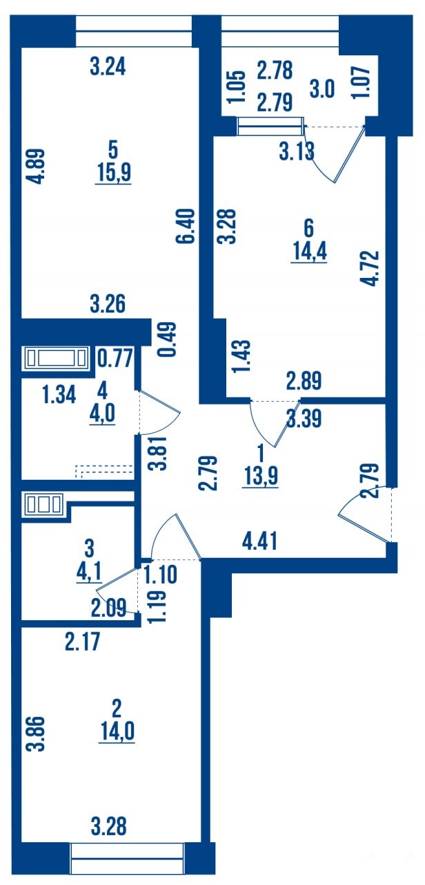 - 15.39 м²
