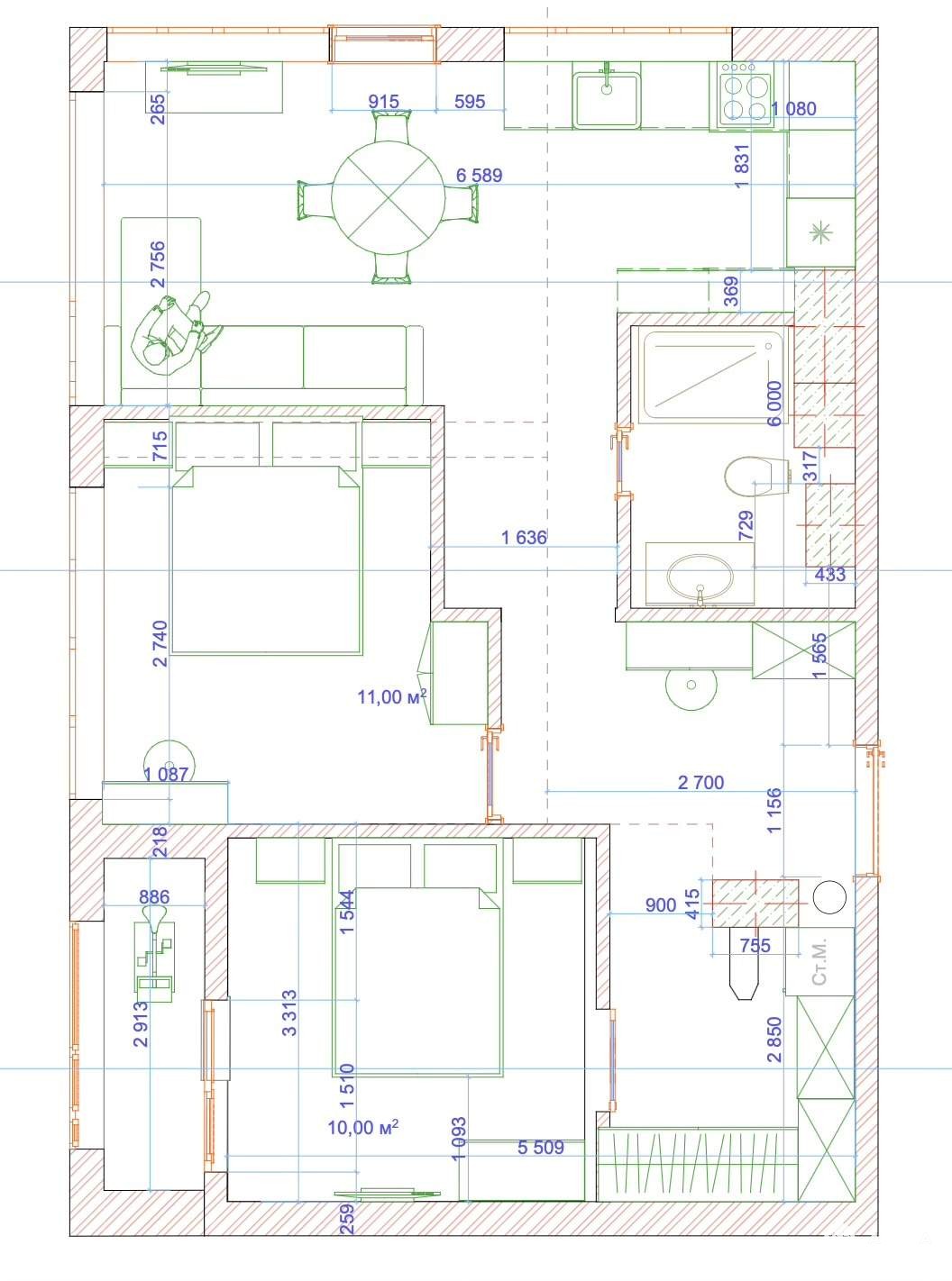 - есть готовые дизайн проекты квартиры вдвух вариантах(1 2 спальни) , перепланировка кухни согласована. И дизайн проект террасы.