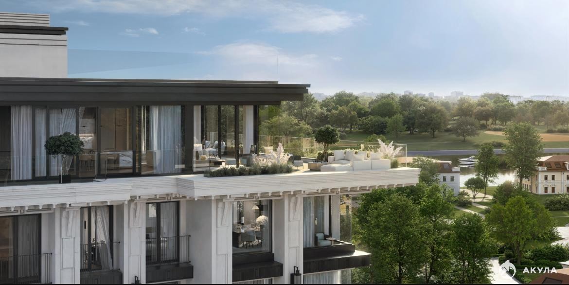 На верхних этажах расположены роскошные пентхаусы с террасами. На первом этаже – резиденции с индивидуальными входами и зелеными патио. Ультрасовременные планировочные решения, вдохновленные частными виллами и яхтами, изящно упакованные в неоклассическую архитектуру. Дом для самых требовательных.