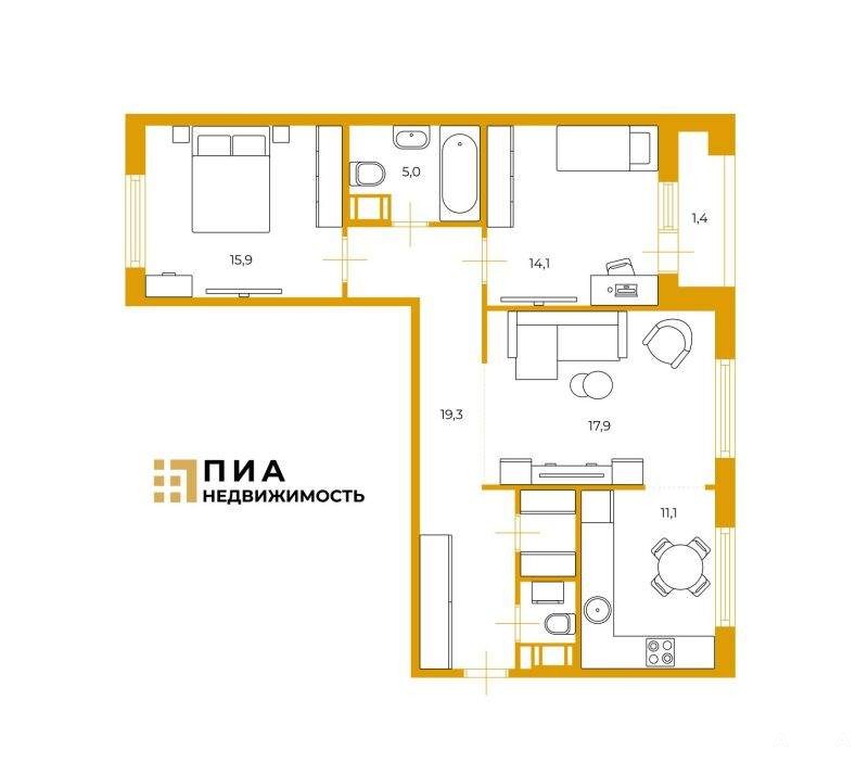 Сформированная инфраструктура, в шаговой доступности есть все необходимое для комфортной жизни: в доме работает ВкусВилл, ресторан. В пешей доступностидетский сад, аптеки, салоны красоты и многое другое.