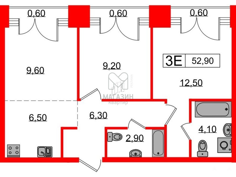 - 53 м²