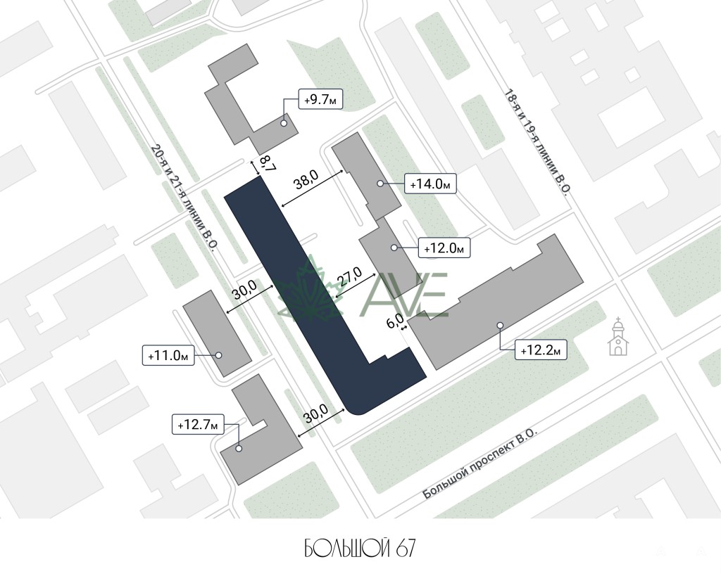 Клубный корпус - всего 4 этажа, вид на роскошный Большой проспект Васильевского острова.