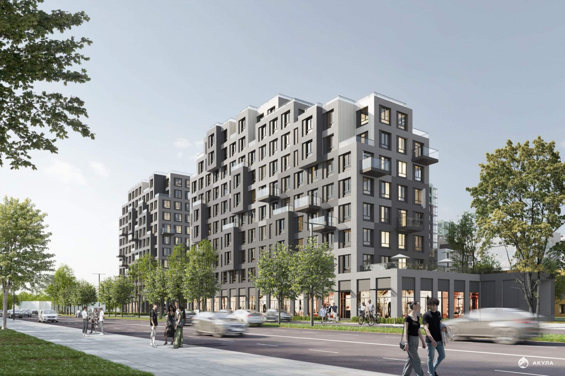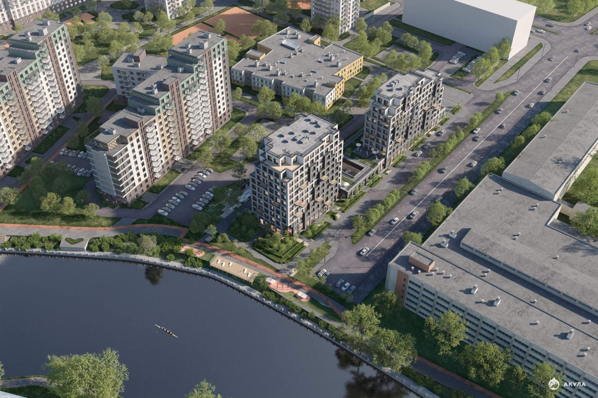 Река, которая обнимает дома, дышащие фасады из натуральных материалов, парк с родниками и травами во дворе и уникальная пластичная архитектура созвучны характеру современного города.