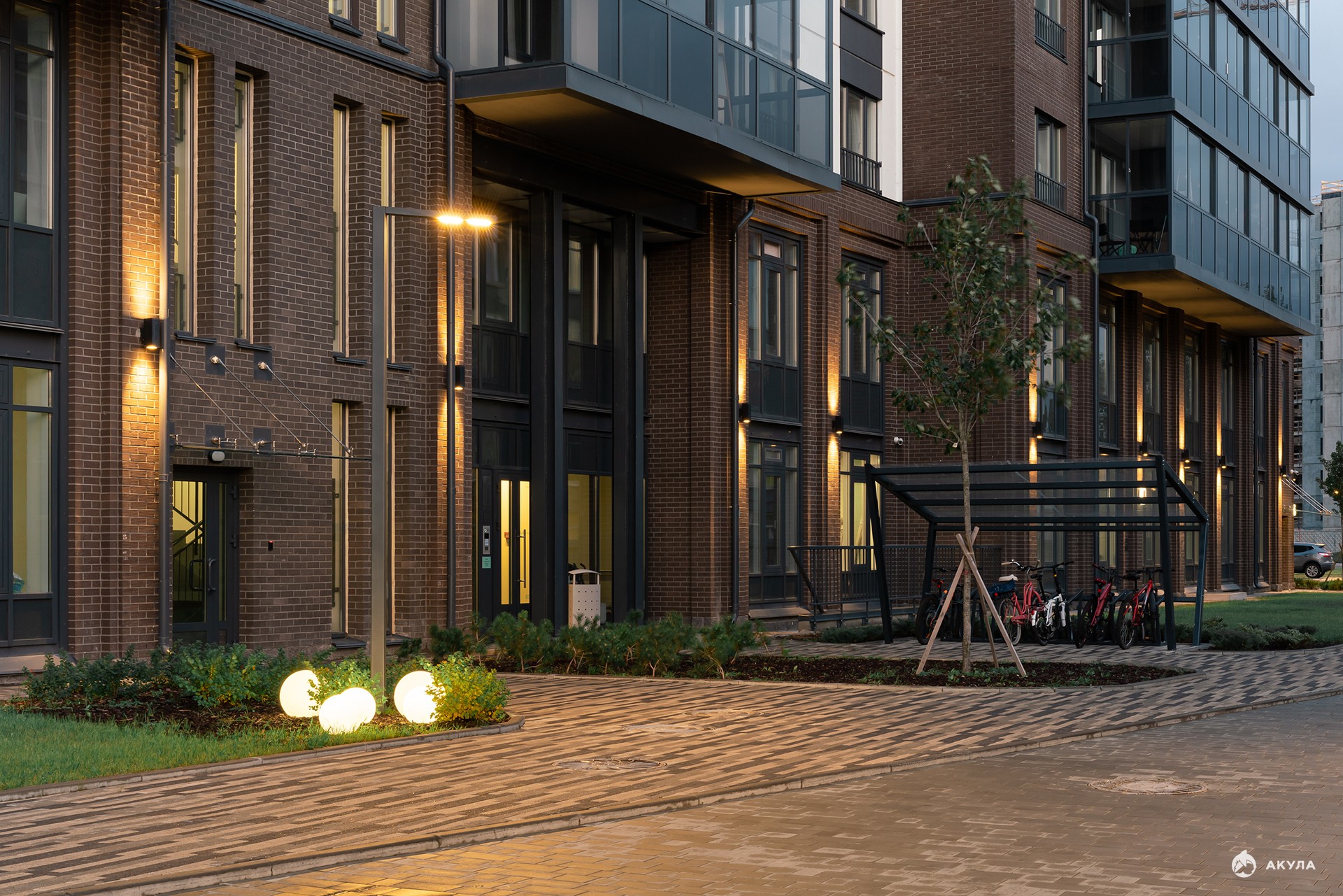 Дворы Magnifika – это обилие зелени, взрослые деревья, зелёные холмы, разноуровневое освещение и природные материалы. Пространство закрыто от случайных прохожих и включает в себя места для отдыха, общения и прогулок. Приезжаете посмотреть своими глазами – и вы будете приятно удивлены вниманию к деталям и качеству исполнению.