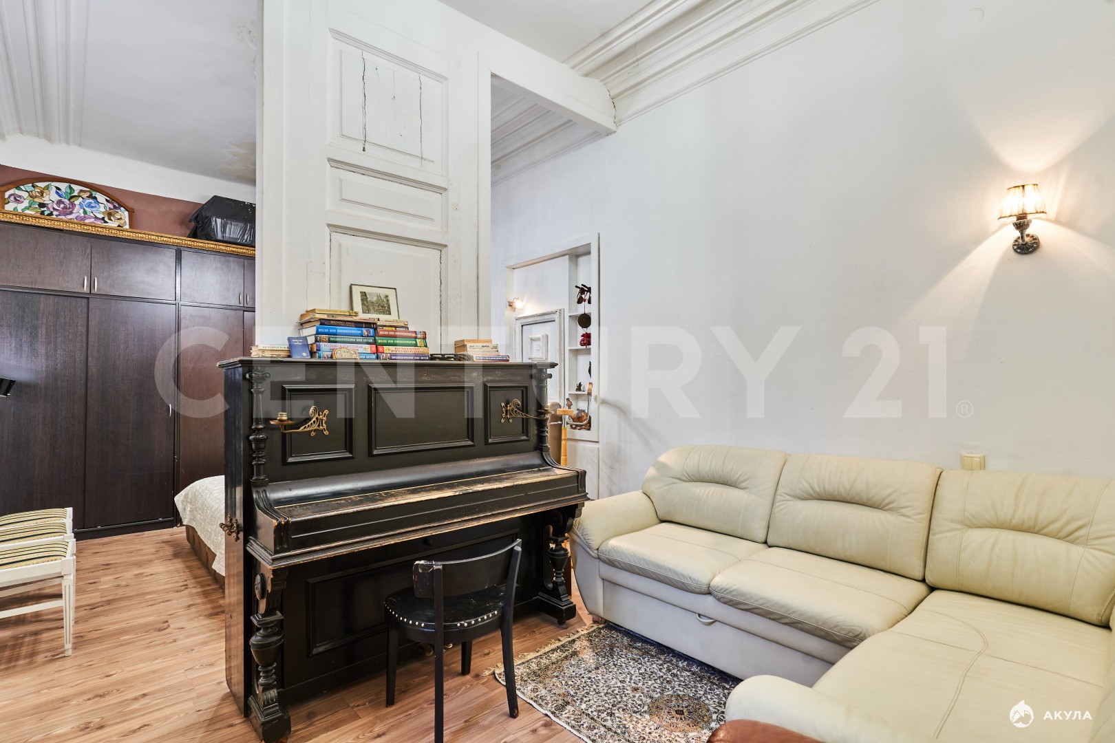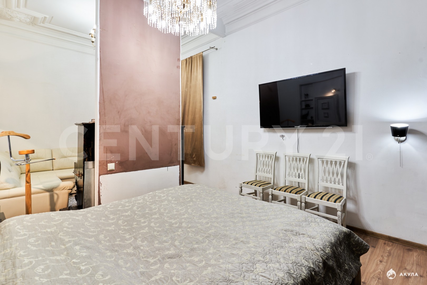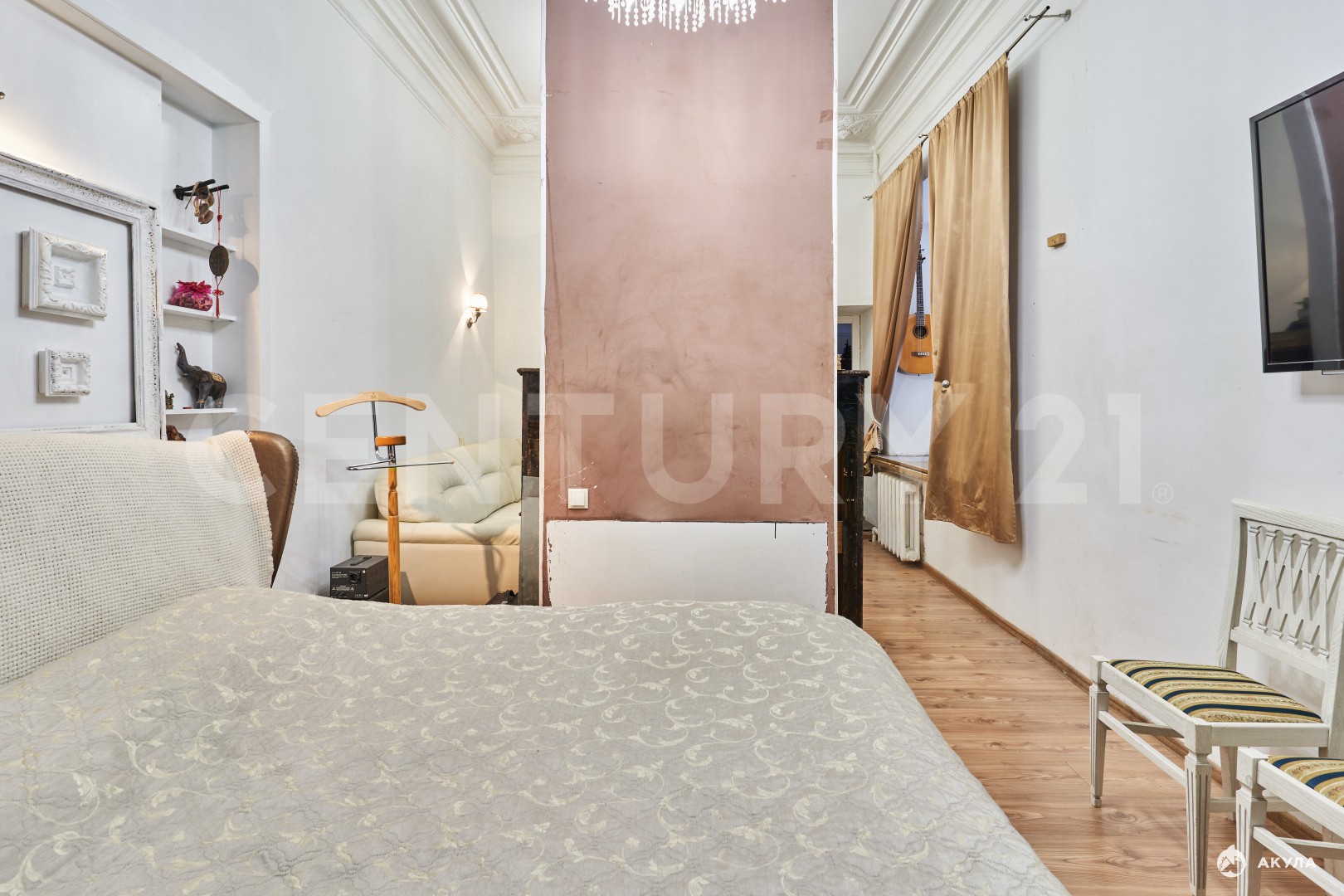 О КВАРТИРЕ:Качественный ремонт, с использованием дизайнерских решенийВысокие потолки, сохранена историческая лепнина Просторная кухня-гостиная, выделены зоны кухни и гостинойВместительная и функциональная гардеробная, которую можно использовать как отдельную спальню, так как она вмещает гарнитур с раскладной кроватью (шкаф-кровать)Просторные, светлые комнаты, правильной формы дарят ощущения величественности