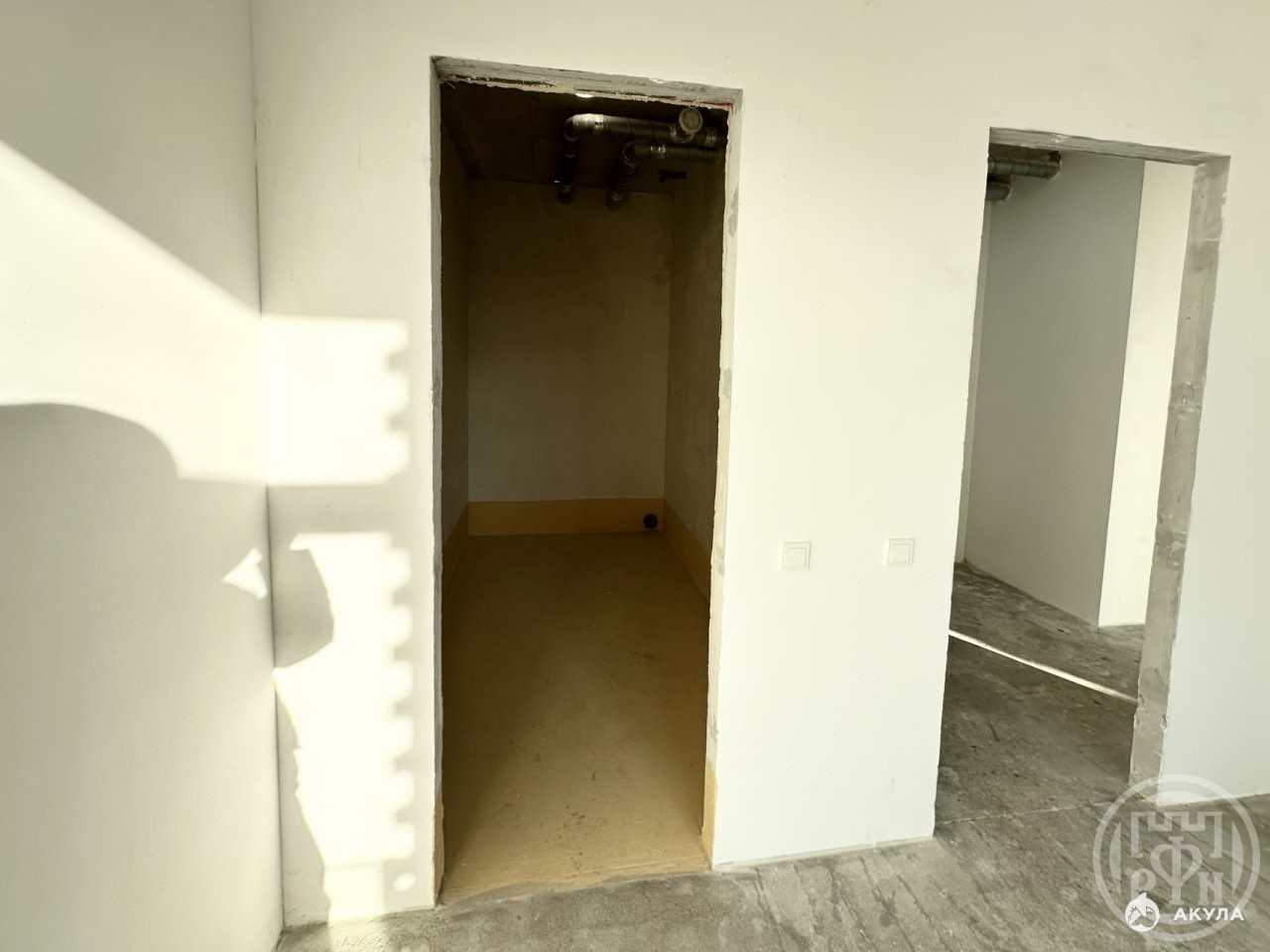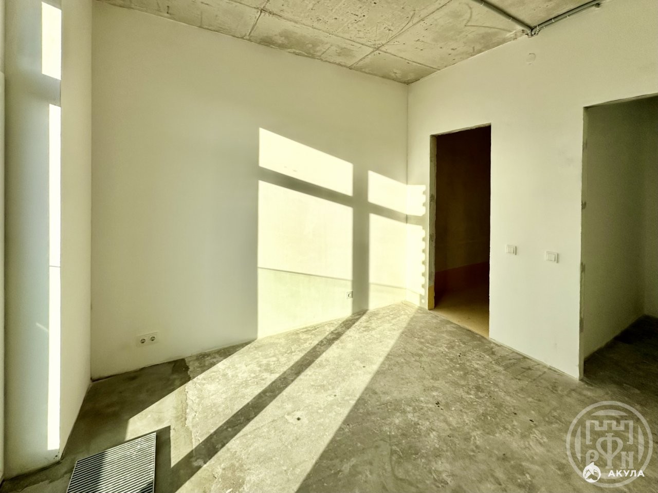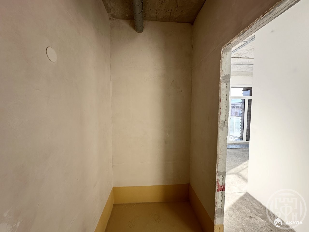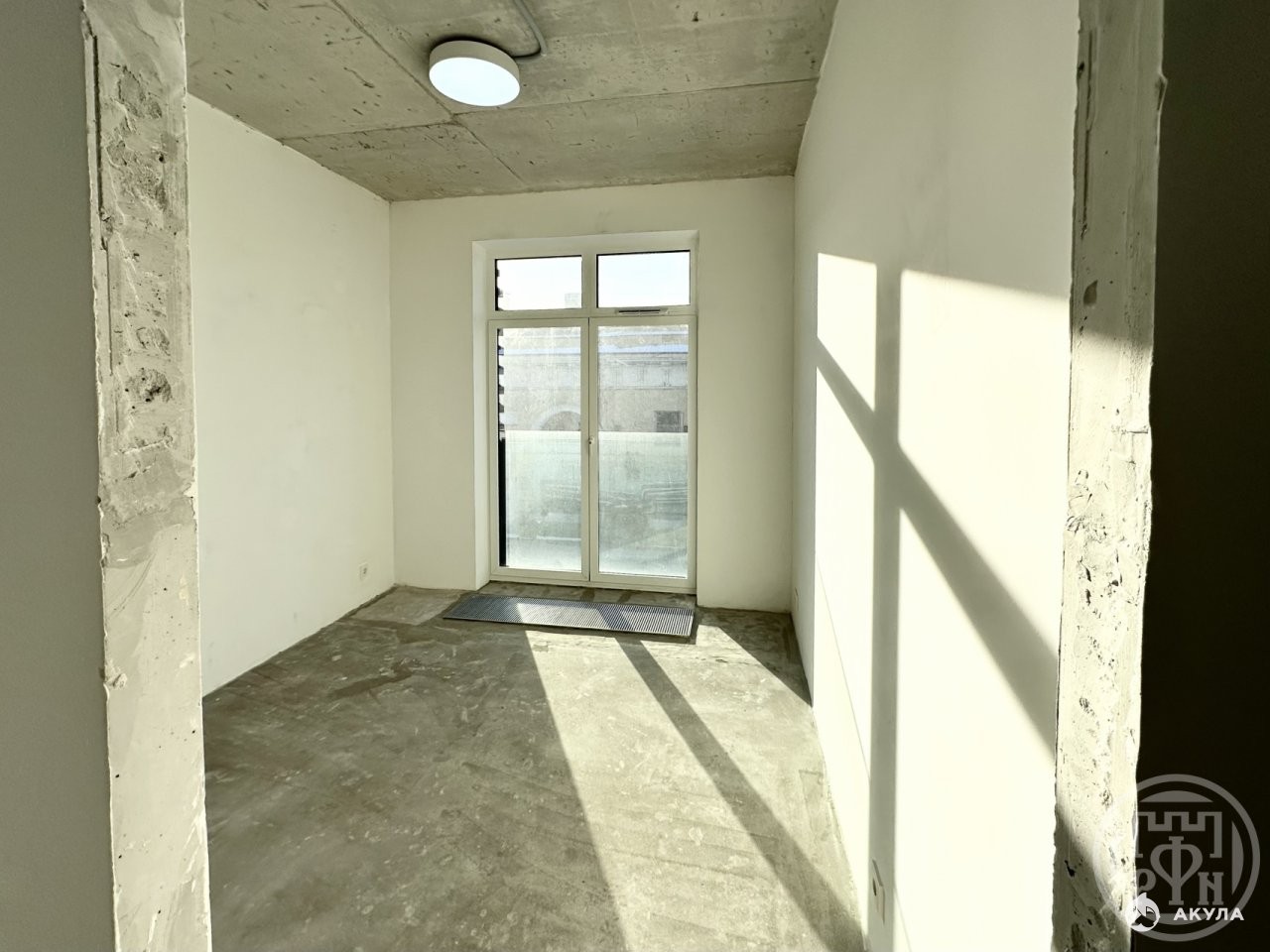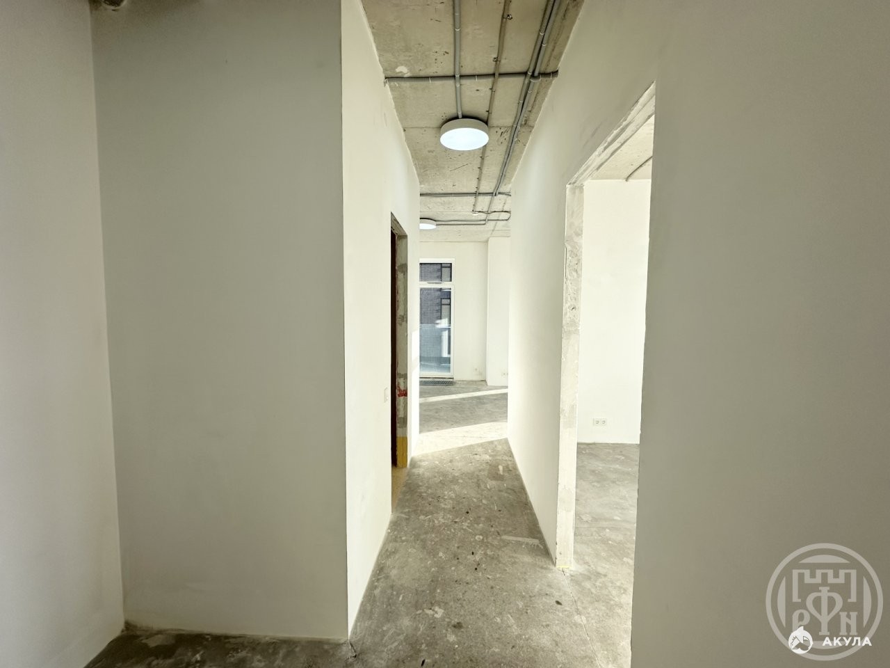 Квартира сдается с подчистовой отделкой: выполнена стяжка полов, гидроизоляция в санузлах, стены выровнены и оштукатурены, произведена разводка электрики, установлены внутрипольные конвекторы, выполнена подготовка для установки систем кондиционирования и вентиляции (в квартире имеется точка подключения к общедомовой системе кондиционирования). При желании новый собственник может изменить планировку по своему усмотрению — внутриквартирные стены ненесущие.