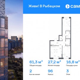 Строим кварталы для жизни с заботой о будущем. Предлагается 2-комнатная квартира комфорт-класса 61, 31 кв.м в корпусе 96 на 3 этаже, в ЖК «Живи! В Рыбацком» Квартира с чистовой отделкой. Доступность дополнительных опций уточняйте у застройщика. Приобрести квартиру возможно по...