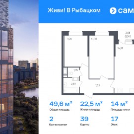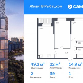 Строим кварталы для жизни с заботой о будущем. Предлагается 2-комнатная квартира комфорт-класса 49, 2 кв.м в корпусе 39 на 1 этаже, в ЖК «Живи! В Рыбацком» Квартира с предчистовой отделкой. Доступность дополнительных опций уточняйте у застройщика. Приобрести квартиру возможно...