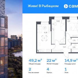 Строим кварталы для жизни с заботой о будущем. Предлагается 2-комнатная квартира комфорт-класса 49, 2 кв.м в корпусе 4 на 1 этаже, в ЖК «Живи! В Рыбацком» Квартира с чистовой отделкой. Доступность дополнительных опций уточняйте у застройщика. Приобрести квартиру возможно по...