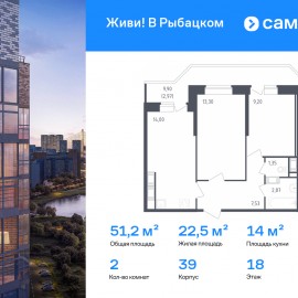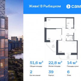 Строим кварталы для жизни с заботой о будущем. Предлагается 2-комнатная квартира комфорт-класса 51, 22 кв.м в корпусе 39 на 18 этаже, в ЖК «Живи! В Рыбацком» Квартира с чистовой отделкой. Доступность дополнительных опций уточняйте у застройщика. Приобрести квартиру возможно по...