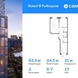 Строим кварталы для жизни с заботой о будущем. Предлагается 2-комнатная квартира комфорт-класса 63, 37 кв.м в корпусе 6, 7 на 17 этаже, в ЖК «Живи! В Рыбацком» Квартира без отделки. Доступность опции «отделка» и возможность комплектации мебелью и декором уточняйте у...
