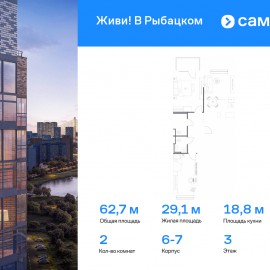 Строим кварталы для жизни с заботой о будущем. Предлагается 2-комнатная квартира комфорт-класса 63, 37 кв.м в корпусе 6, 7 на 22 этаже, в ЖК «Живи! В Рыбацком» Квартира без отделки. Доступность опции «отделка» и возможность комплектации мебелью и декором уточняйте у...