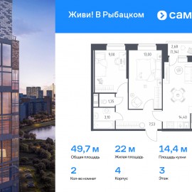 Строим кварталы для жизни с заботой о будущем. Предлагается 2-комнатная квартира комфорт-класса 49, 72 кв.м в корпусе 4 на 3 этаже, в ЖК «Живи! В Рыбацком» Квартира с чистовой отделкой. Доступность дополнительных опций уточняйте у застройщика. Приобрести квартиру возможно по...
