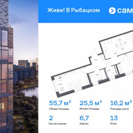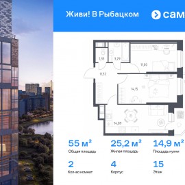 Строим кварталы для жизни с заботой о будущем. Предлагается 2-комнатная квартира комфорт-класса 55 кв.м в корпусе 4 на 15 этаже, в ЖК «Живи! В Рыбацком» Квартира с чистовой отделкой. Доступность дополнительных опций уточняйте у застройщика. Приобрести квартиру возможно по...
