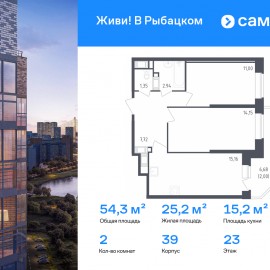 Строим кварталы для жизни с заботой о будущем. Предлагается 2-комнатная квартира комфорт-класса 54, 32 кв.м в корпусе 39 на 23 этаже, в ЖК «Живи! В Рыбацком» Квартира с предчистовой отделкой. Доступность дополнительных опций уточняйте у застройщика. Приобрести квартиру...