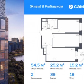 Строим кварталы для жизни с заботой о будущем. Предлагается 2-комнатная квартира комфорт-класса 54, 46 кв.м в корпусе 39 на 19 этаже, в ЖК «Живи! В Рыбацком» Квартира с предчистовой отделкой. Доступность дополнительных опций уточняйте у застройщика. Приобрести квартиру...