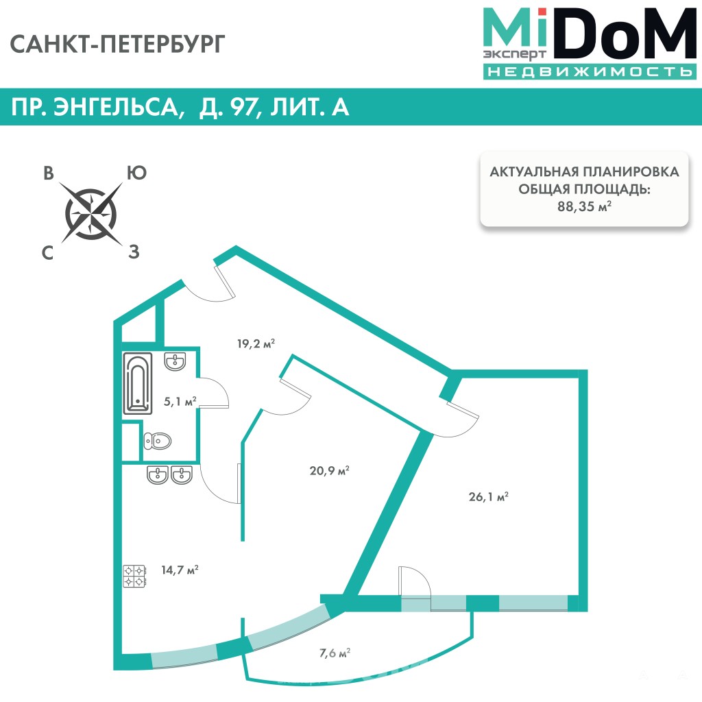 Арт. 88960779. МИДОМ. Эксперт. Недвижимость предлагает к ПРОДАЖЕ великолепную двухкомнатную квартиру в комплексе комфорт-класса с закрытой территорией и озером, в престижной и зеленой локации Выборгского района!