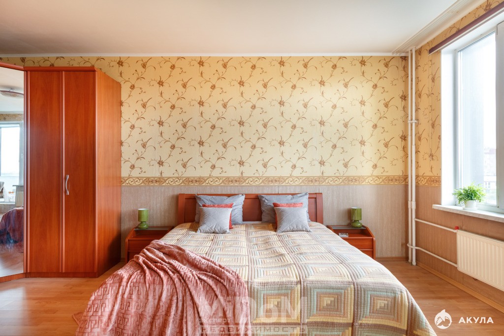 В просторной спальне 26, 1 м2 с двумя окнами легко разместить дополнительную рабочую зону, место дневного отдыха или детскую на 2-3 детей!