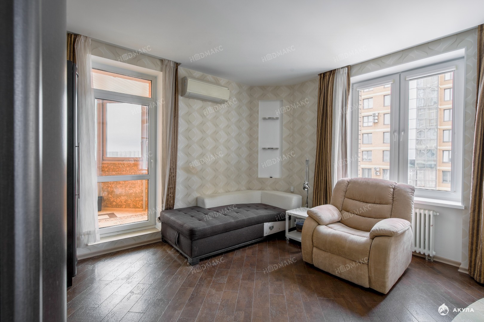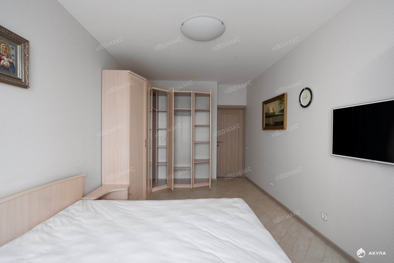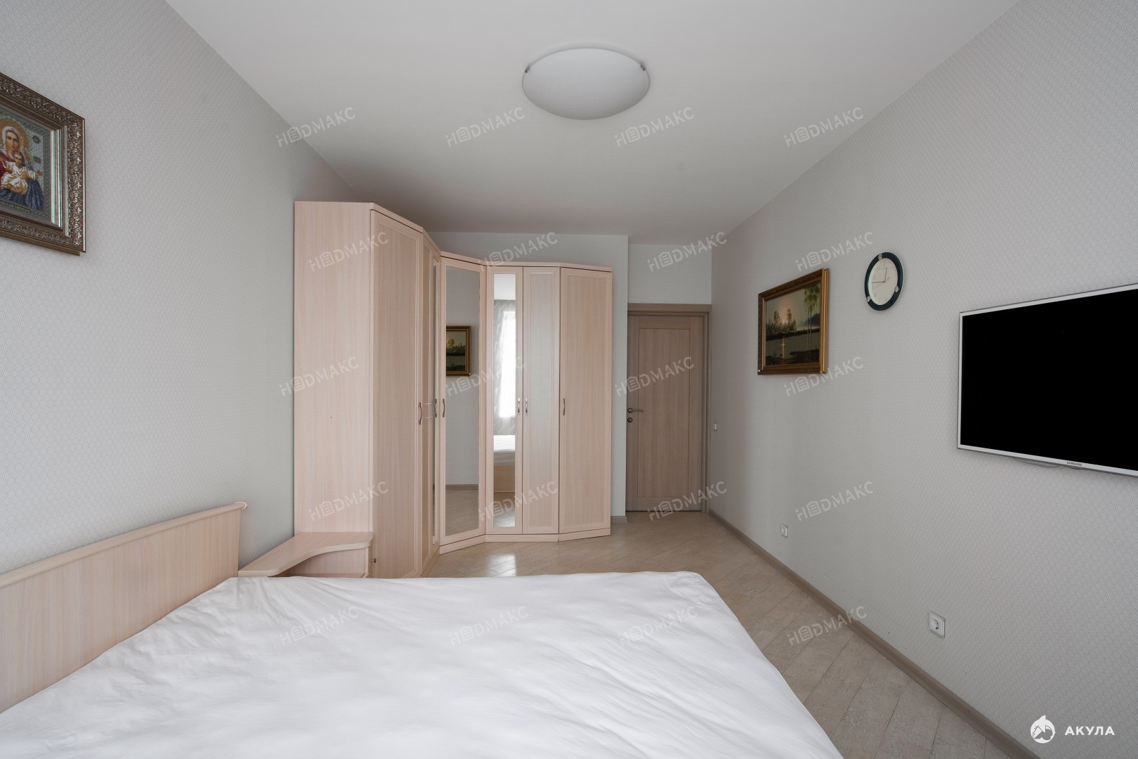 В квартире много систем хранения, установлена вся необходимая техника. Кондиционер в каждой комнате. Квартира теплая и светлая.