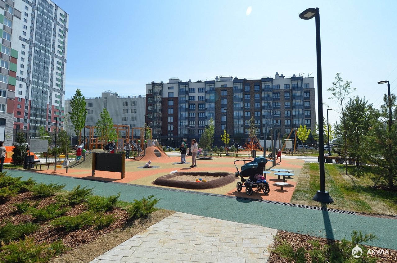 Дом окружен лесным массивом, а внутри квартала находятся широкие европейские пешеходные улицы и променады, торговые зоны, кафе, спортивные клубы, площадки для спорта и детских игр.
