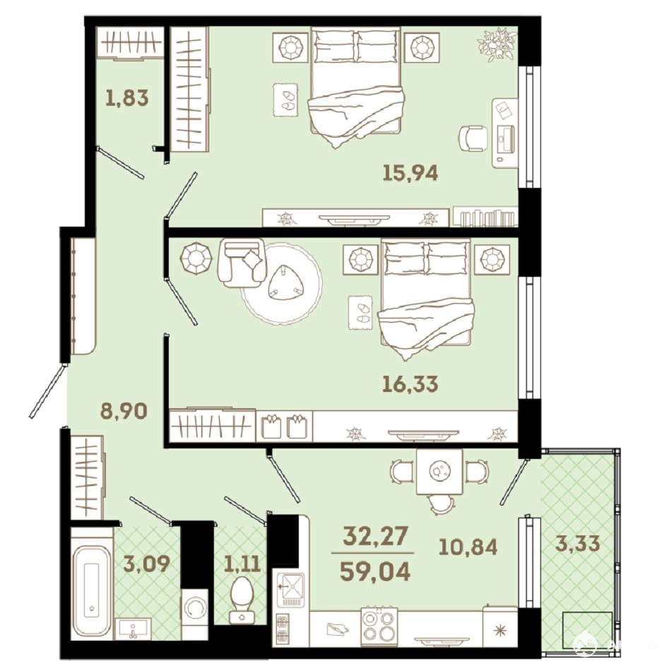 №328621 Санкт-Петербург, Приморский р-н, метро Озерки, Реки Каменки наб., 3 к.3. Продается 2- комнатная светлая квартира в ЖК OKLA.
