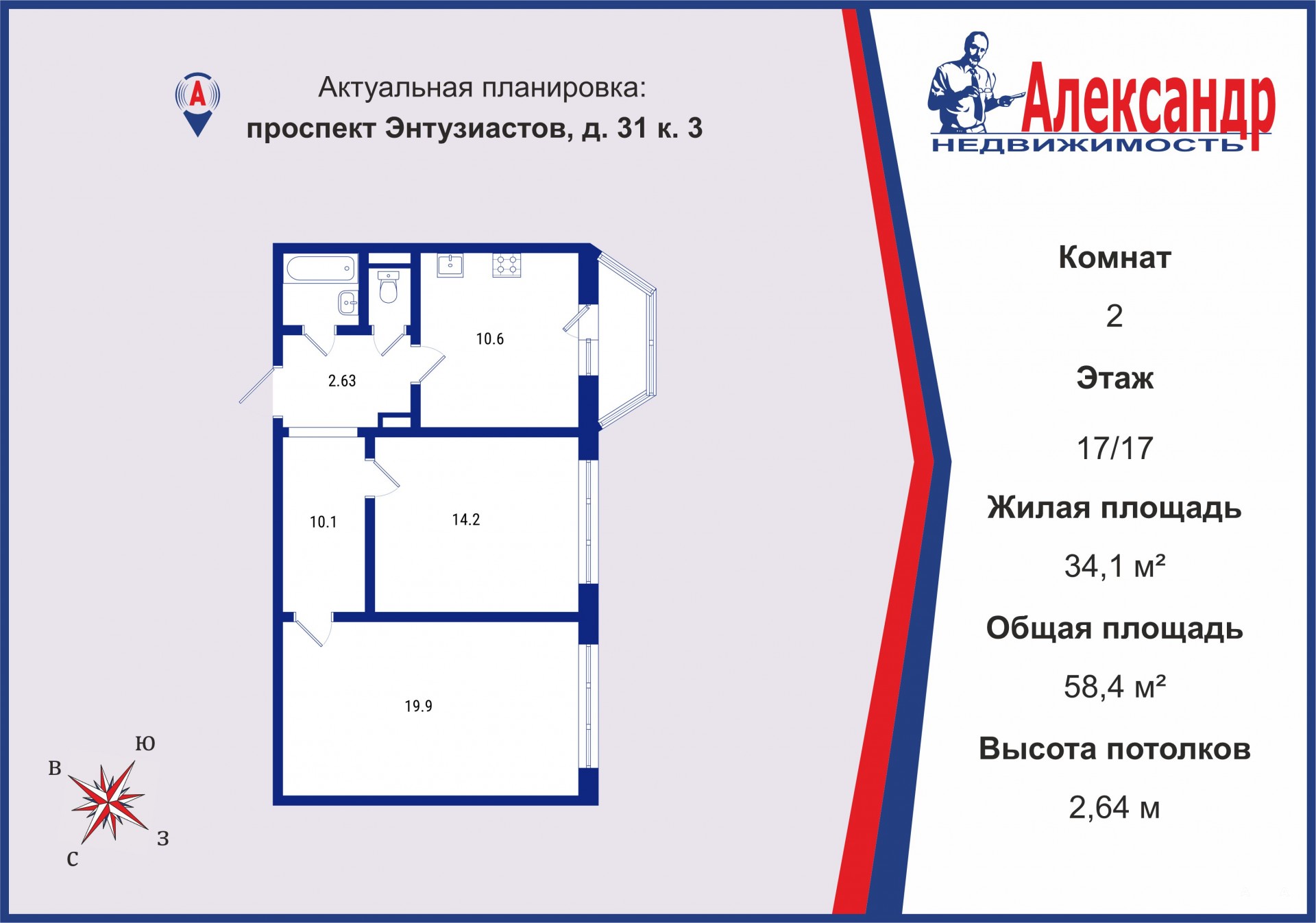 1702607 Предлагаем видовую квартиру на 17 этаже, в доме 2006 года постройки. Прекрасный вид на город и удобное местоположение дома. Рядом есть всё для комфортного проживания. В 3-х минутах от дома гипермаркет "Окей", торговый центр "Июнь", различные магазины и социальные объекты.