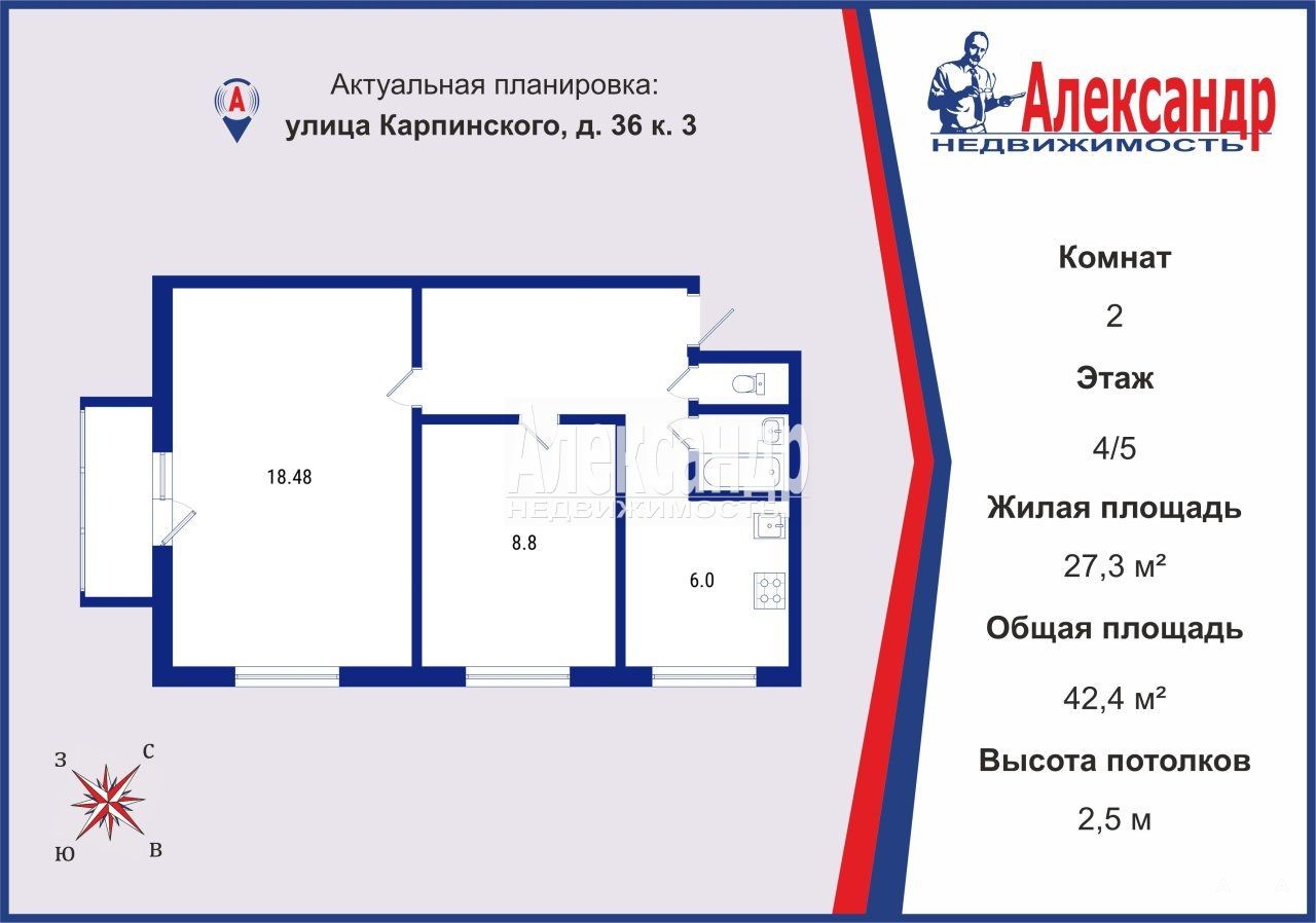 Полностью освобождённая от всего лишнего двухкомнатная квартира, общей площадью 42, 4м², готовая к продаже и обновлению на любой вкус! Квартира обладает правильной планировкой, угловая, что делает ее более солнечной и светлой. Расположена на 4 этаже, комнаты изолированные 18, 48 кв.м+8, 8 кв.м, кухня 6 кв.м. Установлены окна ПВХ. Сан.узел раздельный.
