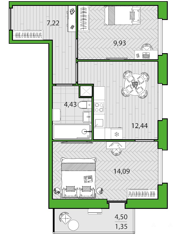 - 12.44 м²