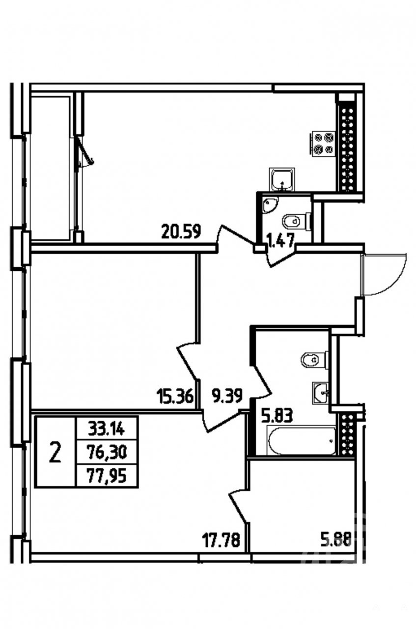 О КВАРТИРЕ: Общая площадь квартиры составляет 77, 95 кв.м. Квартира очень светлая и теплая, обладает просторной кухней-гостиной площадью 20, 59 кв.м , где удобно разместится столовая зона для семейных ужинов и приёма гостей. Раздельный санузел 5, 83+5, 88 кв.м, добавляет комфорта в повседневное использование жилого пространства. Наличие лоджии позволяет наслаждаться видами на улицу, создавая дополнительное место для отдыха. Просторный холл - 9, 39 кв.м, 2 изолированные комнаты 15, 36+17, 78 кв.м.