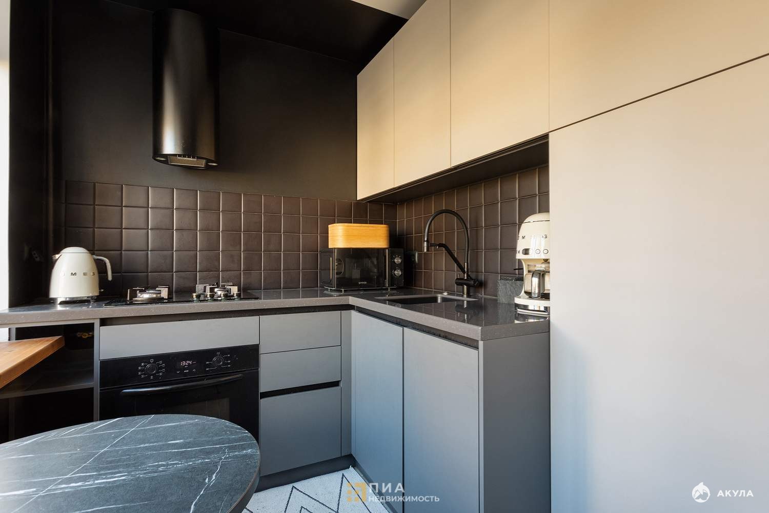 Установлена новая техника: духовка, посудомойка, холодильник, микроволновка. Есть обеденная зона и диван - идеально для отдыха и встреч с друзьями.