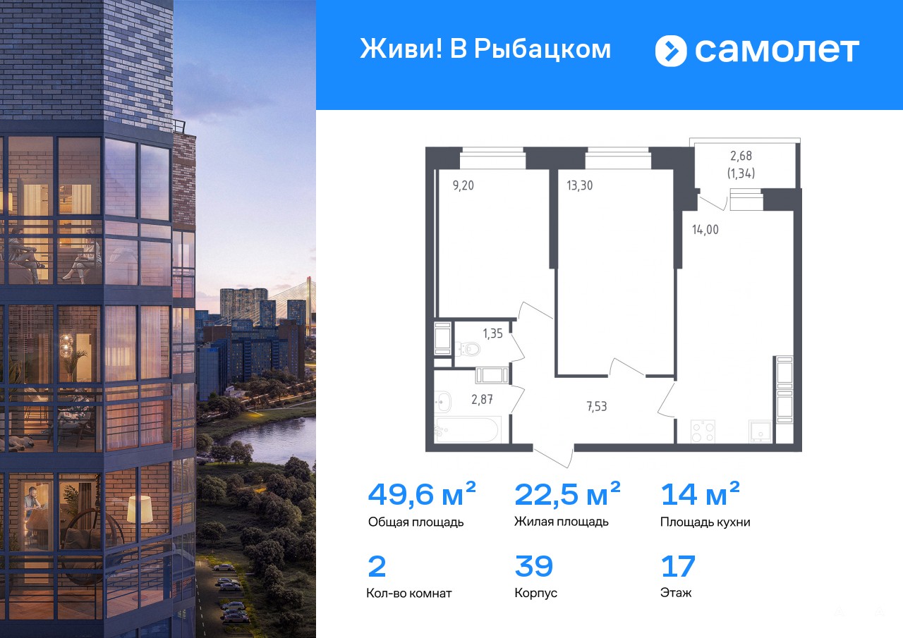 Строим кварталы для жизни с заботой о будущем. Предлагается 2-комнатная квартира комфорт-класса 49, 59 кв.м в корпусе 39 на 17 этаже, в ЖК «Живи! В Рыбацком»